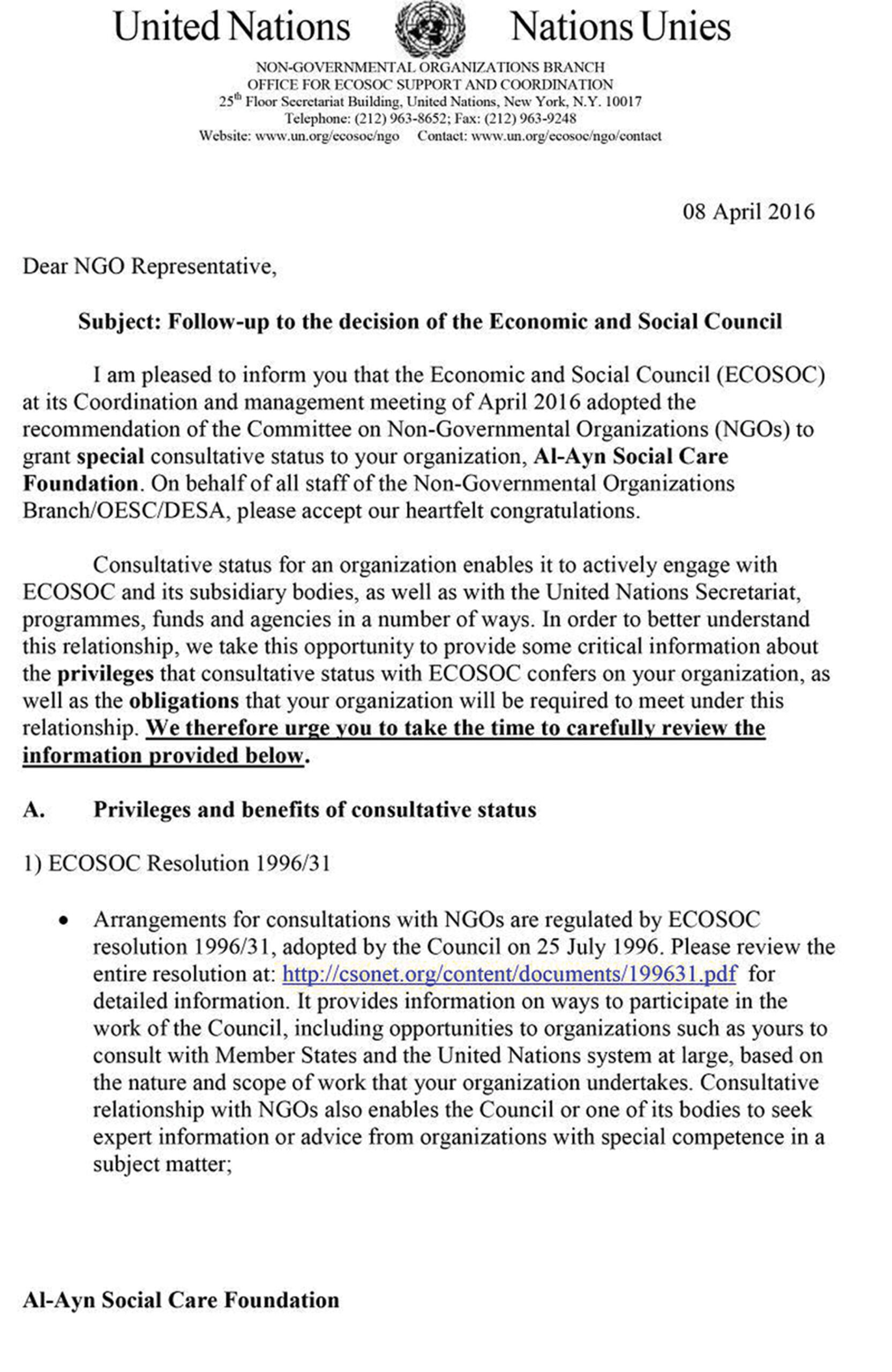 أما على المستوى الدولي، فقد حصلنا على الصفة الاستشارية بالدرجة الخاصة من المجلس الاقتصادي والاجتماعي التابع للأمم المتحدة عام 2016، وكان لنا عدة مشاركات في اجتماعات مجلس حقوق الانسان منذ ذلك الحين.
